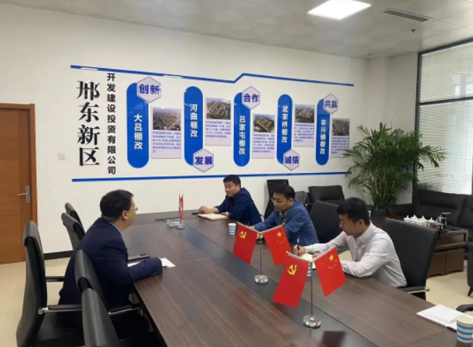 4月19日上午,筑城河北建設投資咨詢公司副總經理王永軍、河北建融股權基金管理有限公司副總經理常樂以及河北省城市建設投融資協會副秘書長李志堅一行赴邢臺市邢東新區開發建設投資有限公司交流訪問,董事長鄭杰出席了此次會議并就公司現狀與未來發展思路進行了交流。