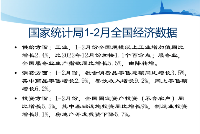 1 宏觀背景 國際背景 當前世界處于兩個正在醞釀但尚未看到曙光的前夜。一方面,新一輪科技革命和產業變革正處在突破的前夜,世界各國圍繞存量科技紅利的爭奪日趨激烈,因此當前國際和地區競爭的特征是存量博弈。人類文明史在大多數時間里是一部痛苦的存量博弈史,在農耕文明時代,爭奪的對象是土地與人口,只要擁有土地和人口,就能生產更多的糧食、絲綢、瓷器等物質財富,強者之所以強是因為掠奪了弱者的資源,存量博弈的本質就是零和游戲,這是由當時的生產力水平和資源的稀缺性決定的,因為落后的生產力只能保證極少數人過上舒適的生活,“朱門酒肉臭”對應的一定是“路有凍死骨”。工業革命使社會生產力得到極大飛躍,人類進入一個物質財富相對豐裕的增量博弈時期,工業文明時代爭奪的對象是技術和市場。 當前,人類科技已陷入一個再突破的瓶頸期,世界進入一個新的存量博弈階段。基礎科學理論已停滯了將近70年,還停留在上個世紀愛因斯坦的時代。上世紀40年代,量子力學、相對論等基礎理論的重大突破帶來了二戰后應用科技的爆炸式繁榮,美國等西方國家基于未來科技發展的樂觀前景,主動把中低端制造業轉移到發展中國家,其戰略很明確,就是發展高科技,以其強大的科技力量保持其科技優勢、產業優勢,領跑全世界,獲取超額利益。 但是進入21世紀,美國精英突然發現,基礎理論遲遲無法突破,應用科技很快就將基礎理論這個檸檬的最后幾滴水榨干。偏偏這個時候,身后出現了一匹烈馬“中國”。此時,對以美國為代表的西方國家來說,最好的選擇是加快前進的步伐,但現實是越來越困難。所以,理性的選擇就是:向前走不動就只能狙擊追擊者;蛋糕做不大就盡量多分一點,這就是當前國際博弈的基本邏輯。 另一方面,舊秩序向新秩序轉換的前夜:百年變局疊加世紀疫情,全球力量格局加速調整,當前國際格局正處在舊秩序向新秩序轉換的劇烈變動時期。2018年以來的中美貿易戰、科技戰、金融戰,2020年以來的世紀大疫情,2022年以來的俄烏沖突,今年發生的土耳其大地震、美國部分銀行破產事件,下一秒世界將發生什么,誰也無法預測,未來唯一確定的是不確定。 當今世界格局,是從第一次工業革命開始,西方工業文明對非西方農業文明形成了絕對優勢并長期占據主導地位。在此基礎上,以西方為中心、以非西方為外圍,形成了一個“中心—外圍”格局。在這種格局中,“外圍國家”對“中心國家”是一種依附關系,也成為了“外圍供養中心”模式,這是200多年來,世界政治、經濟、科技、軍事格局的本質,也是現存全球產業鏈、價值鏈、供應鏈體系的本質。 所謂“百年變局”,是近年來伴隨外圍的非西方國家在實力上快速逼近處于世界中心的西方國家,近300年來西方國家依托工業文明先發優勢所形成的對非西方國家的絕對優勢正在變為相對優勢,非西方國家的絕對劣勢變為相對劣勢,以西方國家為中心構建的“中心—外圍”格局正在被打破。在這場變局中,中國是重要參與者和顯著力量。 國內背景 國內處于四個正在發生但尚未突破的轉換期。一是國家財富積累邏輯正在轉換,但尚未找到新的邏輯。建國前50年,國家財富積累靠剝奪農民,通過工農業剪刀差,把財富從農業農村轉移到城市和工業,初步建立了現代工業體系。近25年,國家財富積累靠“土地財政”,通過把農用地轉向城市和工業用地,形成土地收益(級差地租),支撐了20多年來的城市和基礎設施建設及產業發展。而未來國家財富積累邏輯是什么尚未形成。 二是經濟增長的動力正在轉換,但尚未取得突破。我國經濟增長的動力由數量邏輯向質量邏輯轉換,資源要素供給趨緊,中低端制造業外移,被迫轉向以人力資本為核心的創新驅動發展模式,發展中高端制造業,追求高質量發展。 三是人口結構正在轉換,但尚未完成。人口增長趨勢發生不可逆的改變,人口紅利正在從數量型轉向質量型,從人力資源轉向人力資本。2022 年末,我國總人口 14.1 億人,人口自然增長率為-0.60‰,人口出現負增長。據國家衛健委的測算,預計“十四五”時期,我國 60 歲及以上老年人口總量將突破3億,占比將超過20%;2035年,60歲及以上老年人口將增加到4.2億左右,占比將超過 30%。 四是消費需求結構正在轉換,但尚未實現躍升。消費需求正由物質消費轉向精神消費,改革開放以來,我國居民圍繞衣、食、住、行的消費結構升級梯次展開,新世紀之前主要是滿足居民衣食需求,新世紀之后主要是滿足居民住行需求。目前,我國居民圍繞物質消費的結構升級基本完成,下一階段消費需求新的升級方向主要是精神層面的,包括康、教、養、游、娛等。 2 中國經濟 基于上述國際和國內背景,當前和今后一個時期中國經濟將在諸多不確定性中謹慎前行,增長的速度將取決于兩個前夜趨于明朗和四個轉換突破的速度,可能存在三種情景: 情景1:國際國內均不出現重大不確定性事件,潛在增長率得到較充分發揮,可以維持5-7%的增長 情景2:快速突破美西方的圍堵、科技迅速突破并占據領先優勢、快速找到并形成國家財富積累的新邏輯,可能實現7%以上的新一輪增長 情景3:國際或國內發生全局性重大灰犀牛事件,可能出現5%以下的低速增長 政府對2023年的國內生產總值增長目標為5%左右,國內生產總值增實際潛在增長率5-7%,這主要取決于三個因素: