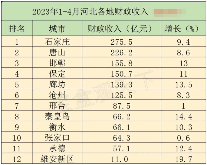 2023年1-4月河北各地財政表現,石家莊總量居首,秦皇島增速優異